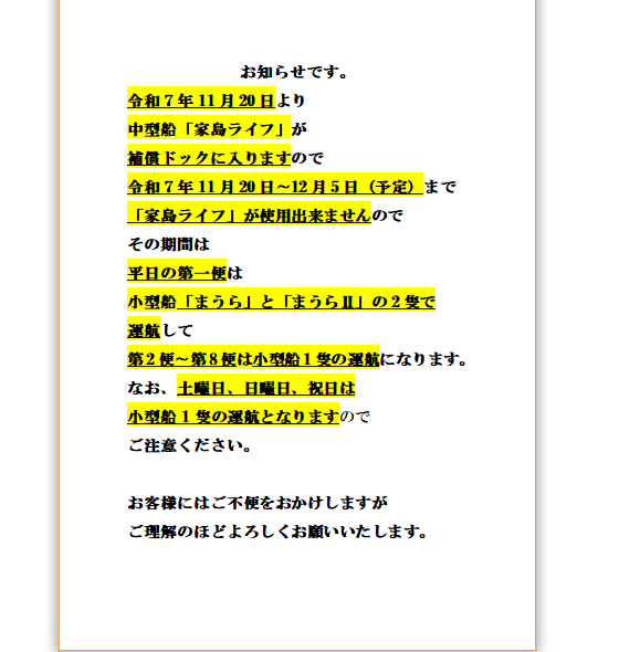 家島本島(真浦港・宮港)、姫路港を結ぶ定期旅客船の会社です。